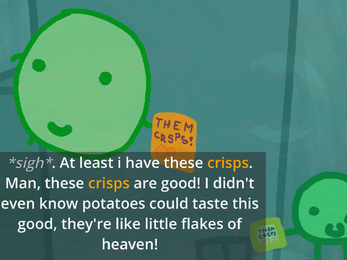 Use your ability to accrue immense speed to flatten ANYBODY who stands between YOU and your precious CRISPS (crisps are just chips but more fancy**)!